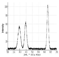 Для изучения межслоевой структуры и подтверждения интеркалирования использовался порошковый рентгенофазовый анализ на лабораторном дифрактометре с медным анодом (Cu Kα, λ ≈ 1,54 Å) в геометрии Брэгга–Брентано. Измерения проводились в диапазоне углов 2θ = 2–40°, что позволяло определить базальное расстояние d001 и выявить структурные изменения после модификации.