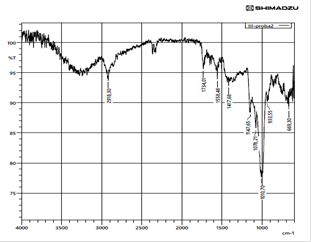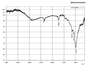 ИК-спектральный анализ полимерной композиции (рис. 1), состоящей из крахмала, Na-КМЦ, НАК, КТПК и ГИПАН, выявил характерные полосы поглощения в следующих диапазонах: 3630–3410 см⁻¹, 2935 см⁻¹, 2364–2345 см⁻¹, 1710 см⁻¹, 1655 см⁻¹, 1543 см⁻¹, 1000 см⁻¹ и 467 см⁻¹. Полосы в области 3630–3410 см⁻¹ соответствуют валентным колебаниям гидроксильных групп и кристаллизационной воды. Смещения деформационных колебаний –ОН- и –СООН-групп (1655–1543 см⁻¹) в область низких частот указывают на наличие межмолекулярного взаимодействия между компонентами композиции — крахмалом, Na-КМЦ, НАК, КТПК и ГИПАН.