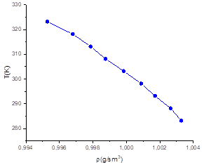 Figure 1. Temperature dependence of the density of the buffer solution with pH = 4.01 |