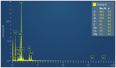 Рисунок 3. Элементный состав глазури (СЭМ-ЭДС анализ)