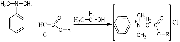 Реакция диметиланилина с эфирами монохлоруксусной кислоты осуществлялась по следующей общей схеме: