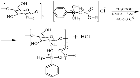 Cхема реакции синтезированных четвертичных аммониевых солей с хитозаном