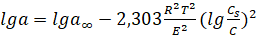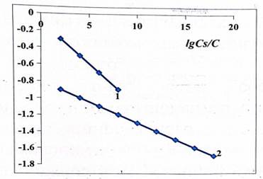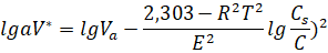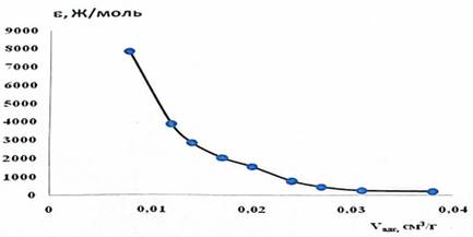 where a is the specific adsorption at a specific temperature (T) and concentration (C, mol/g); Cs - concentration of saturated solution, mol/m3; V* - molar volume of the adsorbent, m3/mol; Va - relative adsorption volume, m3/g; E - is the adsorption energy; R - is the universal gas constant.