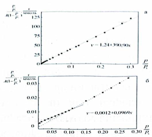 ; n- is an integer (1, 2, 3,); P- is the equilibrium pressure; Ps- is the saturated vapor pressure; a- is the specific adsorption. It is recommended to determine the adsorption energy using a graph constructed using the equation lga = lg