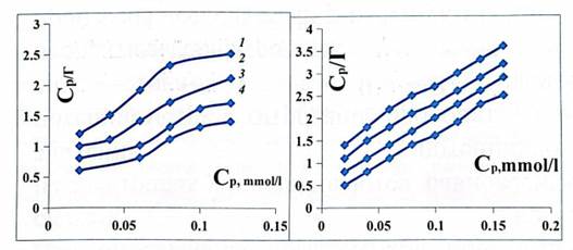 are shown in Figure 3 (a, b). It has been established that the adsorption process of Cl and C ions modified kolin adsorbents occurs according to the Langmuir equation according to experiments.
