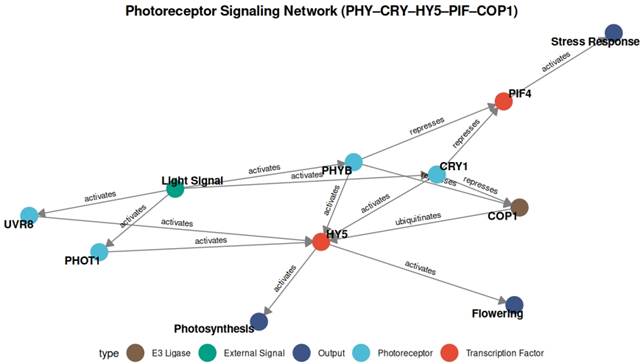 Figure 1. Photoreceptor Signaling Network (PHY–CRY–HY5–PIF–COP1)