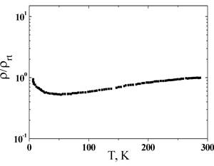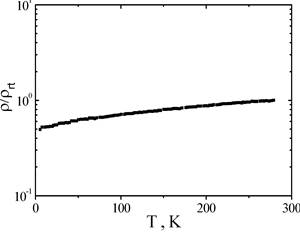 Рисунок 4. Температурная зависимость электрического сопротивления образцов соединений: а) (TMTTeN)2Ag(CN)2; б) (TMTTeN)(SCN)0.88. Значения измеренных сопротивлений ρ(Т) нормированы на сопротивления ρrt при комнатной температуре и представлены в логарифмическом масштабе
