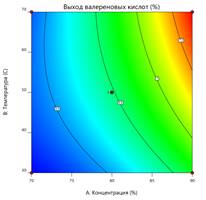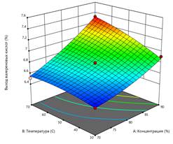 где Y – выход валереновых кислот (мг/100 г), A – концентрация этанола (%), B – температура (°C), C – время экстракции (мин).