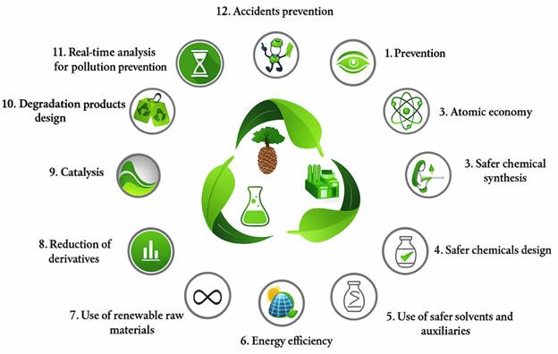 На рисунке 1 схематично отражены эти 12 принципов «зеленой» химии