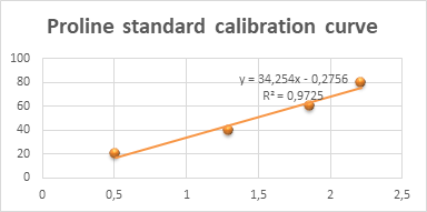 (Graph: x – proline concentration (µg/ml); y – absorbance (520 nm))