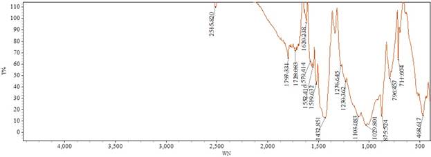 Рисунок 3. ИК-спектроскопические результаты органо-минерального удобрения, полученного на основе фосфогипса и птичьего помёта
