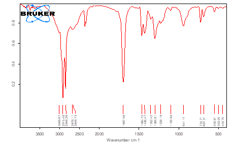 Initially, FTIR analysis was performed on the pure synthesized lubricity–dispersant to identify the characteristic absorption bands corresponding to major functional groups such as carbonyl (C=O), hydroxyl (O–H), amide/ester linkages, and aliphatic C–H stretching vibrations. Measurements were carried out using an FTIR spectrometer in the range of 4000–400 cm⁻¹ with a resolution of 4 cm⁻¹. Samples were analyzed using ATR (attenuated total reflectance) mode without additional preparation.