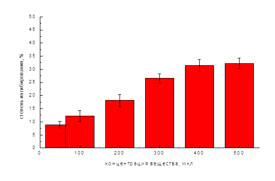 Рисунок 1. Динамика увеличения степени ингибирования (в %) (антирадикальная активность) спиртового раствора Tribulus terrestris L. при увеличении концентрации экстракта