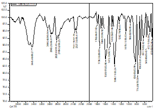 ИК-спектры, зарегистрированные на приборе Shimadzu IR-Tracer-100 для чистой циануровой кислоты, метафосфорной кислот и синтезированного на их основе аддукта, записывались в диапазоне 4000–600 см-1. Наблюдаемые смещения колебательных частот анализировались для подтверждения образования аддукта.