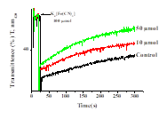 Следующим изученным флавоноидом был кемпферол-7-О-рамнозид, который, как было обнаружено, что активирует фермента сукцинат-феррицианидредуктазы на 95,3±6,1% при концентрации 10 мкМ и на 235,3±2,6% при концентрации 50 мкМ по сравнению с контролем (рис. 2, Б). Также обнаружено, что флавоноид хризоэриол оказывает активирующее действие на активность фермента (рис. 2, В). Установлено, что данный флавоноид в концентрациях 10 и 50 мкМ активировал фермента на 55,3±3,43% и 77,0±2,92% соответственно по сравнению с контролем. В последующих экспериментах было отмечено, что флавоноид апигенин в концентрации 10 мкМ активировал фермента на 18,3±2,1% по сравнению с контролем, а в концентрации 50 мкМ активность фермента активировалась на 66,8±4,3% по сравнению с контролем (рис. 2, Г). Также обнаружено, что флавоноид лютеолин активирует сукцинатдегидрогеназы на 54,6±1,3% по сравнению с контролем при концентрации 10 мкМ и на 71,2±2,5% по сравнению с контролем при концентрации 50 мкМ (рис. 2, Д). Обнаружено, что следующий флавоноид, цинарозид, активирует фермента сукцинат-феррицианидредуктазы на 65,9±3,6% по сравнению с контролем при концентрации 10 мкМ и на 78,7±2,9% по сравнению с контролем при концентрации 50 мкМ (рис. 2, Е).
