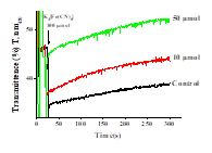 Активность сукцинат-феррицианидредуктазы (сукцинатдегидрогеназы) (КФ 1.3.99.1) в митохондриях скелетных мышц крыс изучали спектрофотометрически по изменению оптической плотности при 420 нм [1], при восстановления K3[Fe(CN6)] в течение 5 мин (при температуре 37°С). Состав инкубационной среды для определения активности фермента: фосфатный буфер 100 мМ, азид натрия 1 мМ, K3[Fe(CN6)] 100 мкМ, сукцинат натрия 5 мМ (pH 7,8). Общий объём инкубационной среды составил 3 мл.