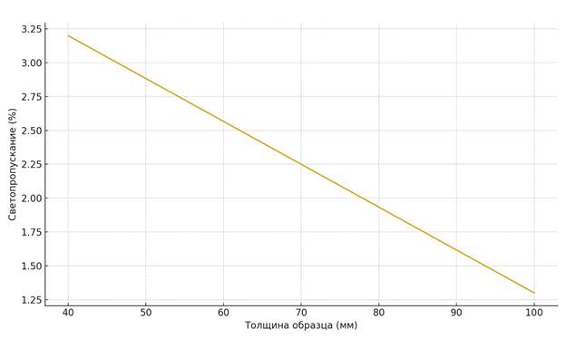 Коэффициент светопропускания составил 2,8–3,6% для образцов толщиной 40 мм, что соответствует международным аналогам и подтверждает эффективность подобранной методики интеграции волокон.