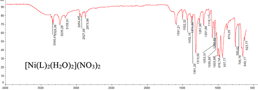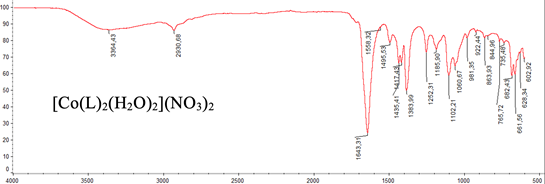 Заключение. Проведенные комплексные исследования позволили установить, что синтезированные координационные соединения нитратов Co(II), Ni(II), и Zn(II) характеризуются октаэдрической геометрией, в то время как координационные соединения на основе хлоридов и нитратов Cu(II) демонстрируют координацию квадратной пирамиды, устойчивость комплексов возрастает в ряду: Zn2+<Co2+<Ni2+<Cu2+. Установлено, что процесс комплексообразования происходит при молярном соотношении металла и лиганда 1:2. Установлена бидентатная координация металлов через атомы азота с гетероциклическим лигандом и атомами кислорода молекул воды. Предложены возможные брутто формулы комплексов: для соединений Zn, Co и Ni - [M(L)2(H2O)2]2+, а для комплекса Cu - [M(L)2H2O]2+. Данные различия обусловлены координационными особенностями металлов и их стереохимическими предпочтениями.