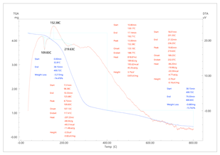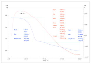 Комплексы [Cu(L)2H2O]Cl2 и [Cu(L)2H2O](NO3)2 изучены методом ТГА; установлено, что одна молекула воды входит в состав внутренней сферы. Вода в нитратном комплексе отщепляется при более высокой температуре (148 °C), чем в хлоридном (110 °C), следовательно, она сильнее координирована и стабилизирована за счет дополнительных водородных связей [19]. До 400оС хлоридный комплекс теряет 75% от первоначальной массы образца, а нитратный - 60%. Конечным продуктом термолиза обоих комплексов определен оксид меди (II).