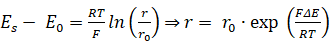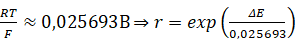 где E0' -формальный потенциал при данных условиях и ионной силе; R – газовая постоянная; T– температура; F – число Фарадея