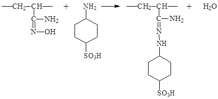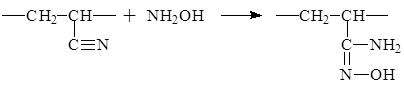 Используя известную методику процесс модификации PAN гидроксиламином был осуществлен по нижеприведены схеме, и в результате этой реакции в состав PAN были введены следующие функциональные группы: