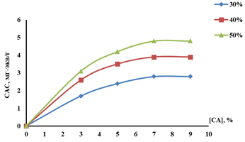 *(T=373K, [СА]=30%(1), 40%(2), 50%(3))*