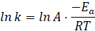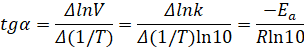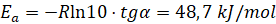 На основании приведенных выше данных по уравнению Аррениуса рассчитана энергия активации:
