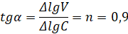 Рисунок 5. Зависимость lgV от lgC. [СА]=50%, τ =7 час.
