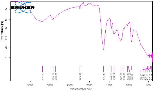 Из результатов анализа можно заключить, что в спектре PSA-1 присутствуют новые интенсивные полосы поглощения при 932 и 1643 см⁻¹, что является ярким свидетельством наличия групп S(O)²(OH). Полоса поглощения при 1447 см⁻¹ относится к деформационным колебаниям связей =N-N, а поглощение в области 2800-2850 см⁻¹ является доказательством наличия аминометиленфосфонатных групп и их существования в виде цвиттер-иона.