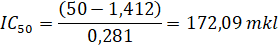 Линия тренда, перенесенная на график, рассчитана на основе формулы функции y=mx+b, представляющей 50% ARF% объема (IC50) по формуле x= (y-b) /m: