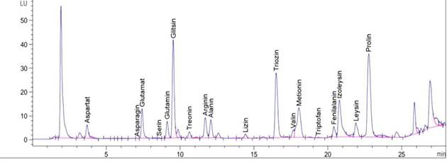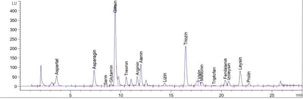 Рисунок 3. Хроматограмма аминокислот, полученных из экстракта стебля растения Astragalus krauseanus