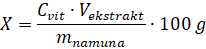 X -amount of vitamins contained in 100 g of the sample, mg;