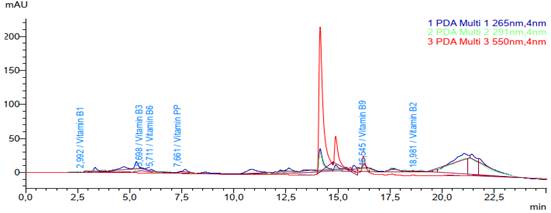 Figure 3.Chromatogram of the determination of vitamins in the sample extract
