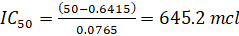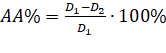 The trend line transferred to the graph was calculated from the function (2) formula y=mx+b to 50% AA% manifesting volume (IC50) X=(y-b)/M: