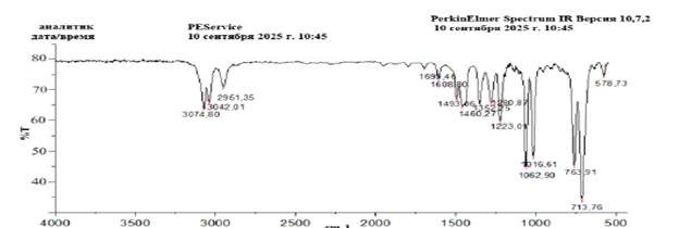 Ароматические C-H связи бензильной группы наблюдаются в диапазоне 3000-3121,98 см⁻¹. Скелетные колебания ароматического кольца присутствуют в диапазоне 1450-1480 см⁻¹.