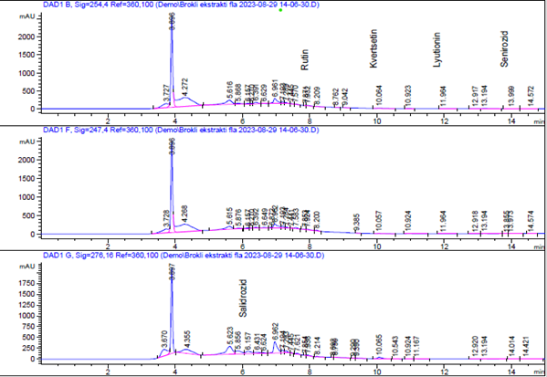 Рисунок 1. Хроматограммы сухого экстракта брокколи