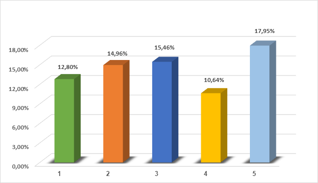 Согласно представленной диаграмме, лидерство по концентрации танинов среди исследуемых образцов принадлежит знаменитому китайскому сорту, отличающемуся плотно скрученными в мелкие шарики листьями, напоминающими порох “Ahmad Tea Gunpowder”, с показателем 17,95%. На втором месте с содержанием танина 15,46% занимает листовой зеленый чай первого сорта “Toza 110 ko‘k choy”. Незначительно уступает ему, располагаясь на третьей позиции, китайский зеленый чай “Exclusive 8008” с процентным содержанием танина 14,96. 12,8% танина вычислили у первого образца, крупнолистового зеленого чая сорта Chunmee “Flecha Zira”. Наименьшее содержание дубильных веществ зафиксировано в крупнолистовом зеленом чае первого сорта “Toza 95 ko‘k choy” 10,64%.