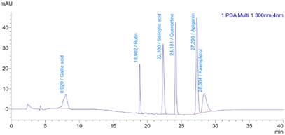 Figure 2. Chromatogram for the determination of polyphenols in the sample extract
