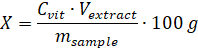 - C vit -is the concentration of the vitamin in the extract, determined by the HPLC method, expressed in mg/L.