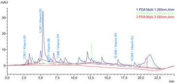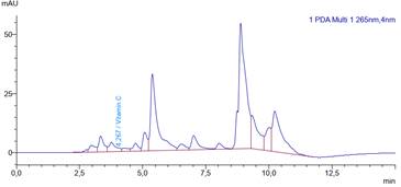 Figure 3. Chromatogram of vitamins identified in banana peel extract