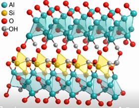 Каолинит характеризуется слоистой структурой типа 1:1, в которой кремнекислородные тетраэдры связаны с алюмооксидными октаэдрами. Межслоевые взаимодействия реализуются за счёт водородных связей, что ограничивает межслоечное набухание, но обеспечивает достаточную структурную стабильность минерала [31,32]. Эти особенности определяют его поведение в водных средах и способность к адсорбции.