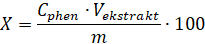 где X — количество фенольных соединений в 100 г анализируемого образца, мг; Cphen – концентрация фенольного соединения в экстракте, определённая методом ВЭЖХ, мг/л; Vextract - объём приготовленного экстракта, л; m – масса навески, взятой для приготовления экстракта.