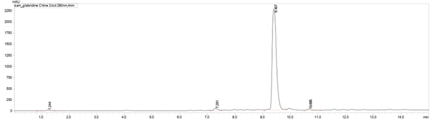 Рисунок 1. Хроматограмма стандартного образца глабридина (tR ≈ 9,4 мин)