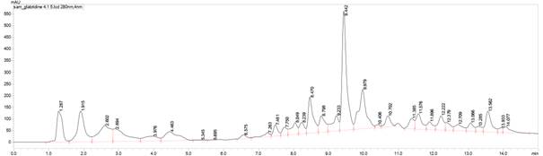 Рисунок 2. Хроматограмма этанольного экстракта отходов корней солодки
