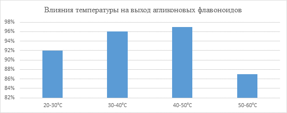 позволяет достичь их максимального выхода. В оптимальных условиях (температура 30–40°С, 4–5 стадий по 4–6 часов) суммарный выход агликоновых флавоноидов достигает 96% от их исходного содержания в сырье.