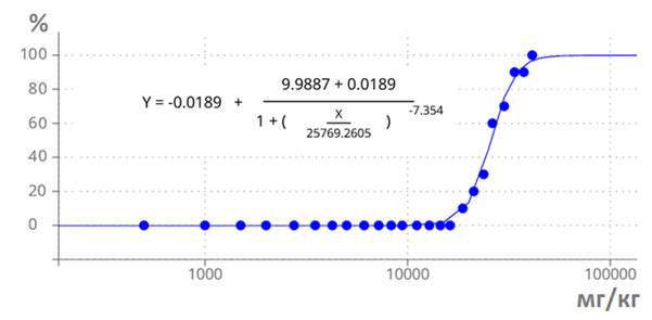 Согласно расчетам, суммарная средне-смертельная доза ЛФ равна LD50n = 25769,3 мг/кг