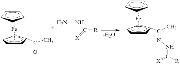 Ферроценовые гидразоны представляют собой важный класс органометаллических соединений, в которых ферроценовый фрагмент связан с гидразонной (–C=N–NH–) группой, обеспечивая развитаю π‑сопряжённую систему и повышенную реакционную способность. Гидразоны демонстрируют разнообразные биологические активности и широко исследуются как лиганды для координационных соединений с переходными металлами, проявляя антимикробную и противораковую активность [8-11].