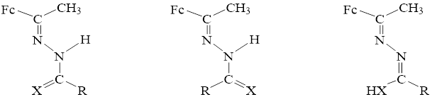 Рисунок 2. Основные таутомерные формы гидразонов моноацетилферроцена