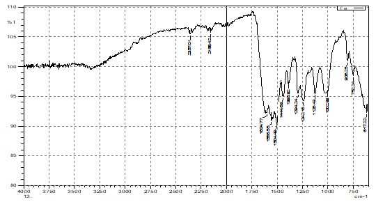 The FT-IR spectrum of the synthesized UFS (Urea-Formaldehyde-Succinic acid) polymeric ligand exhibits several characteristic absorption bands that confirm its polyfunctional structure and the presence of nitrogen and oxygen donor atoms. A broad and intense absorption band in the region of 3180.62 cm-1 is observed, which corresponds to the stretching vibrations of the -NH groups from the urea fragments and the -OH groups from the succinic acid moieties. The broadening of this peak indicates the formation of extensive intermolecular hydrogen bonds within the polymer matrix. The bands at 3037.89 cm-1-2945.30 cm-1 correspond to asymmetric and symmetric stretching vibrations of the -CH2- methylene groups, confirming the cross-linking formed by formaldehyde. The intense absorption at 1622.13 cm-1 is assigned to the Amide I (C=O stretching) and potentially the carboxylate groups from the modified succinic acid. The shift to a lower wavenumber (compared to pure urea or succinic acid) suggests the involvement of these groups in the polymeric framework. The bands at 1556.55 cm-1 and 1504.48 cm-1 correspond to N-H bending and C-N stretching vibrations, respectively. The series of peaks between 1454.33 cm-1 and 1226.73 cm-1 (specifically 1423.47, 1377.17, and 1292.31 cm-1) represent C-H bending and C-O stretching vibrations of the carboxylic acid fragments, further confirming the successful integration of succinic acid into the urea-formaldehyde structure.