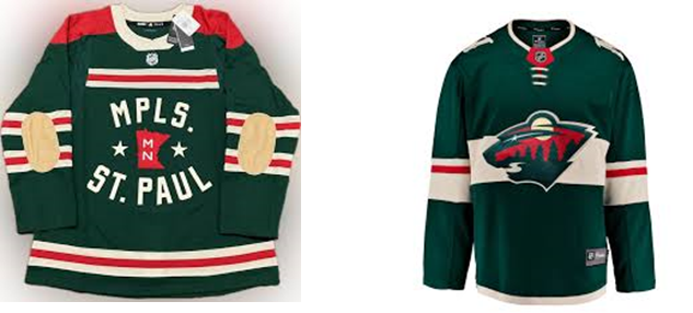 Рисунок 1. Сравнение хоккейных джерси команды “Minnesota Wild” (слева - джерси турнира “Зимняя классика - 2022”, справа - традиционное современное джерси)